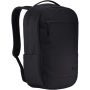 The Case Logic Invigo 15.6" laptop backpack is a simple and refined backpack made of recycled materials with two main compartments and thoughtful organisational features. It is made with a 100% recycled 600D polyester exterior and 150D polyester lining. The padded laptop compartment protects a 15.6'' laptop and the tablet sleeve can hold a 12.9'' tablet. Inside the backpack there are slip pockets to store small accessories, and a zipped mesh pocket providing additional secure storage for small items such as keys. At the exterior of the backpack there is a hidden back panel security pocket that keeps vital items like passport or wallet hidden yet close at hand. The front pocket provides quick storage of items while on-the-go, and the 2 side pockets are suitable for water bottles or an umbrella. The backpack also features a luggage pass-through strap to attach the bag to rolling luggage for effortless travel.