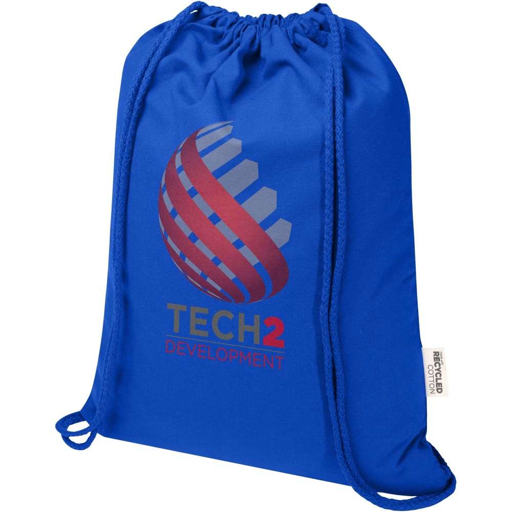 The Peru Blend drawstring bag is made from 60% GRS certified recycled cotton and 40% GRS certified RPET, making it a strong yet lightweight option for everyday use. Easy to carry on the back or shoulder, it features a large main compartment with a cotton drawstring closure that allows quick opening and closing. With 180 g/m2 fabric, the bag is durable and offers plenty of space for adding a logo or message, making it ideal as a giveaway to promote your brand or campaign. The print methods available for this bag are also GRS certified, ensuring a transparent and fully certified supply chain. The bag can hold up to 5 kilos weight.