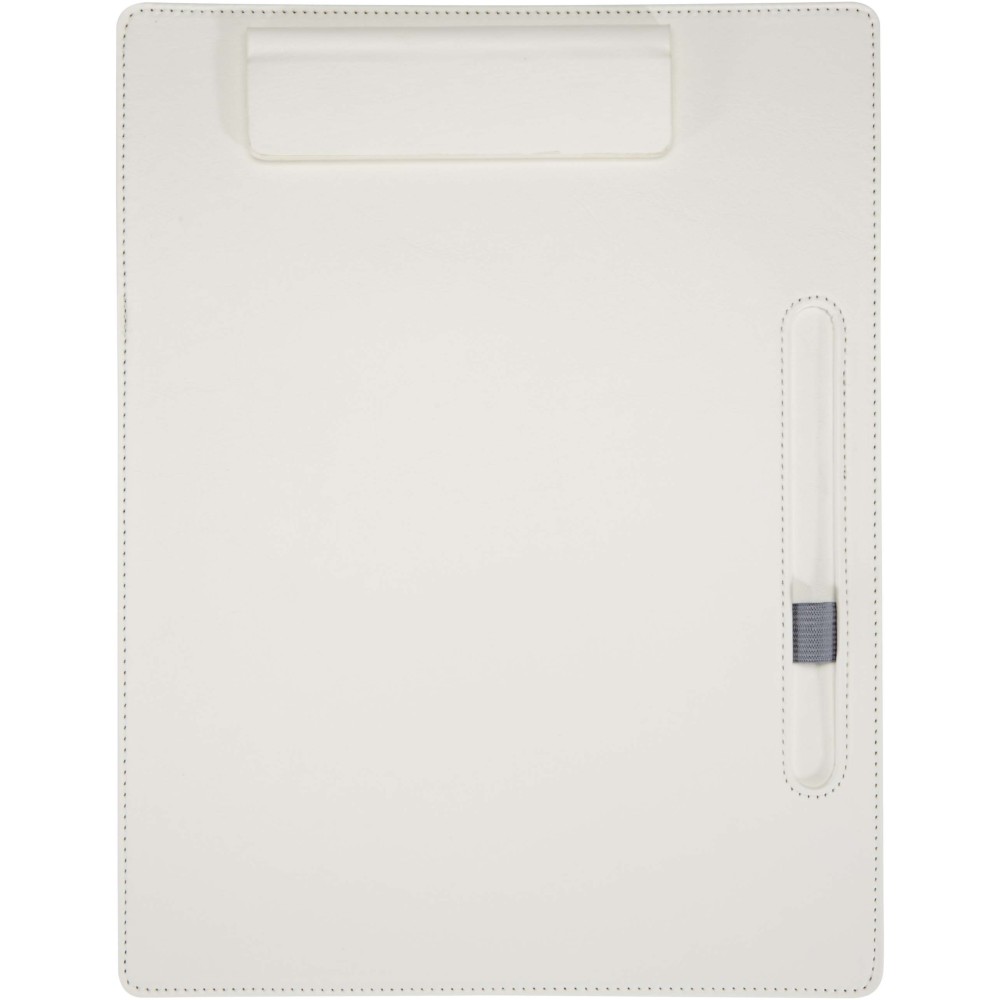 The Clast clipboard combines a sleek PU leather design with practical features for both meetings and everyday use. It fits standard A4 pages and includes a magnetic clip, stitched edges, and a built-in pen loop. Inside are 26 lined sheets of 65 g/m2 paper along with a ballpoint pen made with a recycled plastic upper barrel and an RCS certified recycled aluminium lower barrel. The Juana ballpoint pen is also available separately. Clipboard size: 25.5 × 33 cm. Pen ink colour: black.