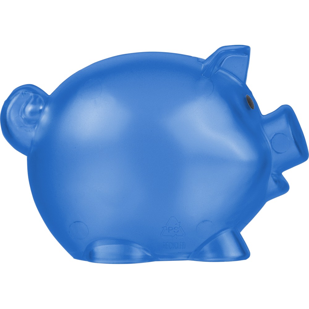 Recycled PS plastic piggy bank Vivi, cobalt blue