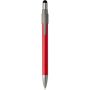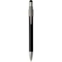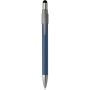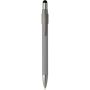 Aluminium and ABS ballpen with rubber coating and rubber tip for capacitive screens. When the pen is lasered, the imprint will show in colour. Blue ink.