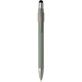 Recycled aluminum ballpoint pen with a rubberized coating on the body. The clip, tip, and pusher are in matching color. The clip is made from metal and the tip from plastic. Approx. 800 meters of writing length. Includes engraved recycled aluminum logo. Blue ink.