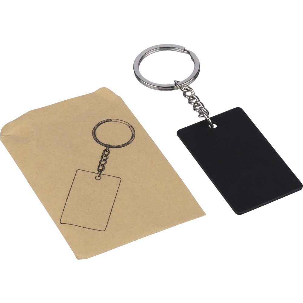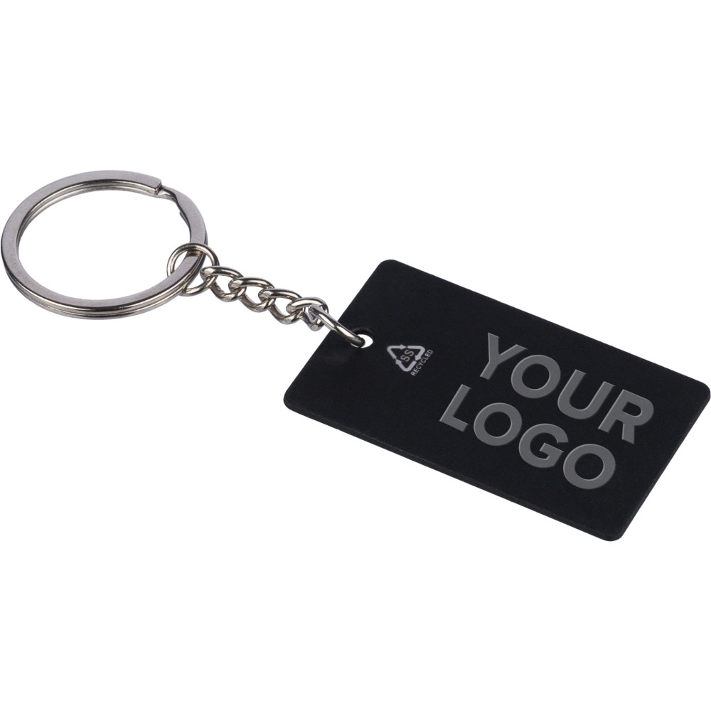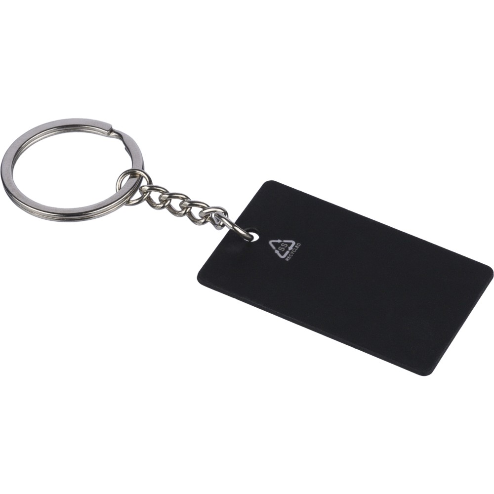 Recycled stainless steel rectangular keychain Jax, black