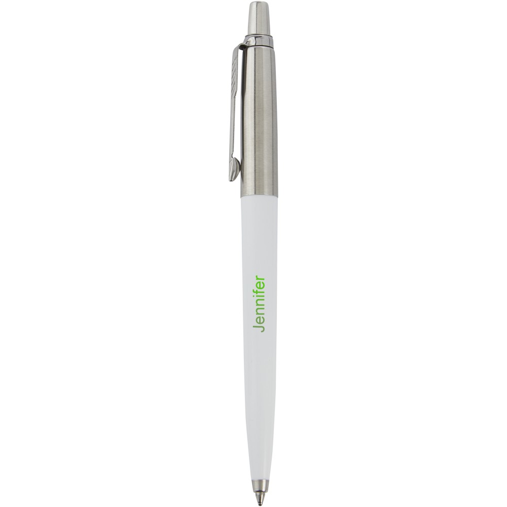 The Parker Jotter Recycled ballpoint pen offers sustainability, style, and performance at an affordable price. Its scratch-free recycled plastic body combines elegance with durability. Including Parker Quinkflow® refill for a smooth writing experience lasting 3500-5500 metres. The trim ring made from recycled stainless steel enhances its eco-friendly appeal. The Jotter Recycled Ballpoint Pen is ideal for budget-conscious, eco-conscious individuals who seek a stylish and sustainable writing instrument. Blue ink. Printing: Engraving