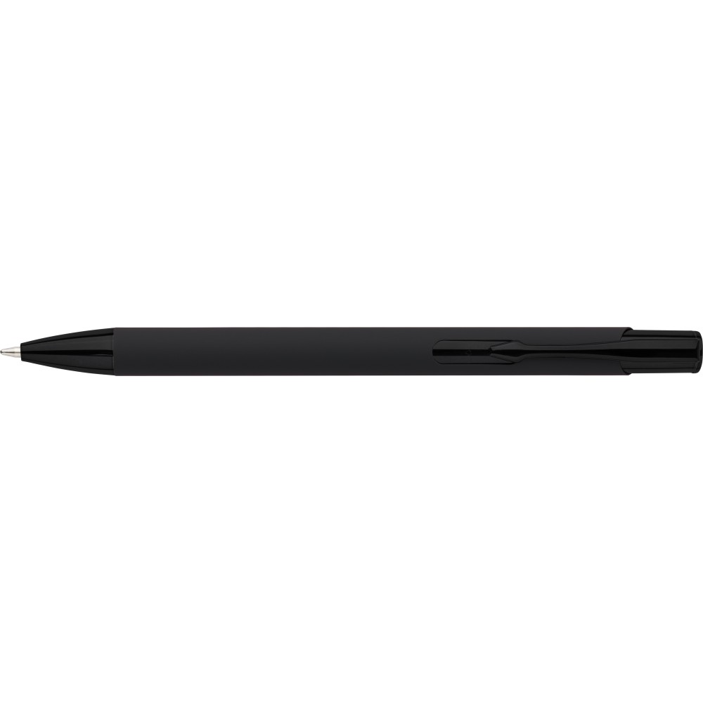 Recycled aluminium rubberized ballpen with matching UV-coated plastic and metal details. Shiny mirror effect appears after engraving. Features engraved recycled logo and writes approx. 800 metres. Blue ink.