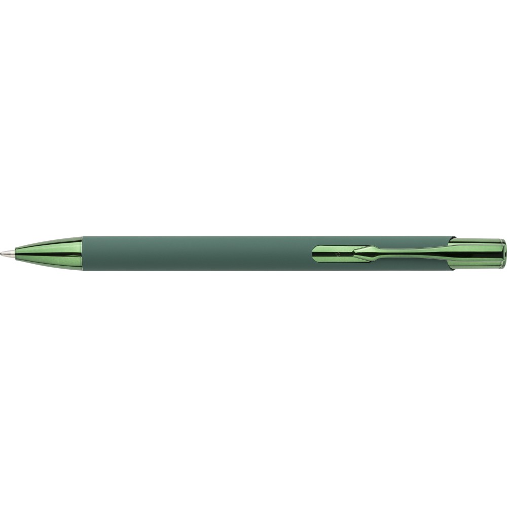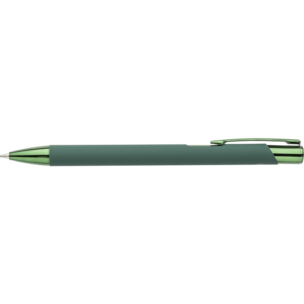 Recycled aluminium rubberized ballpen Anisa, green