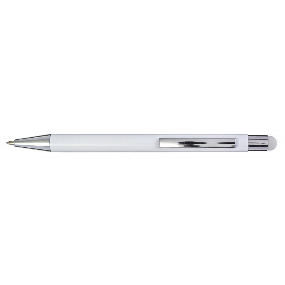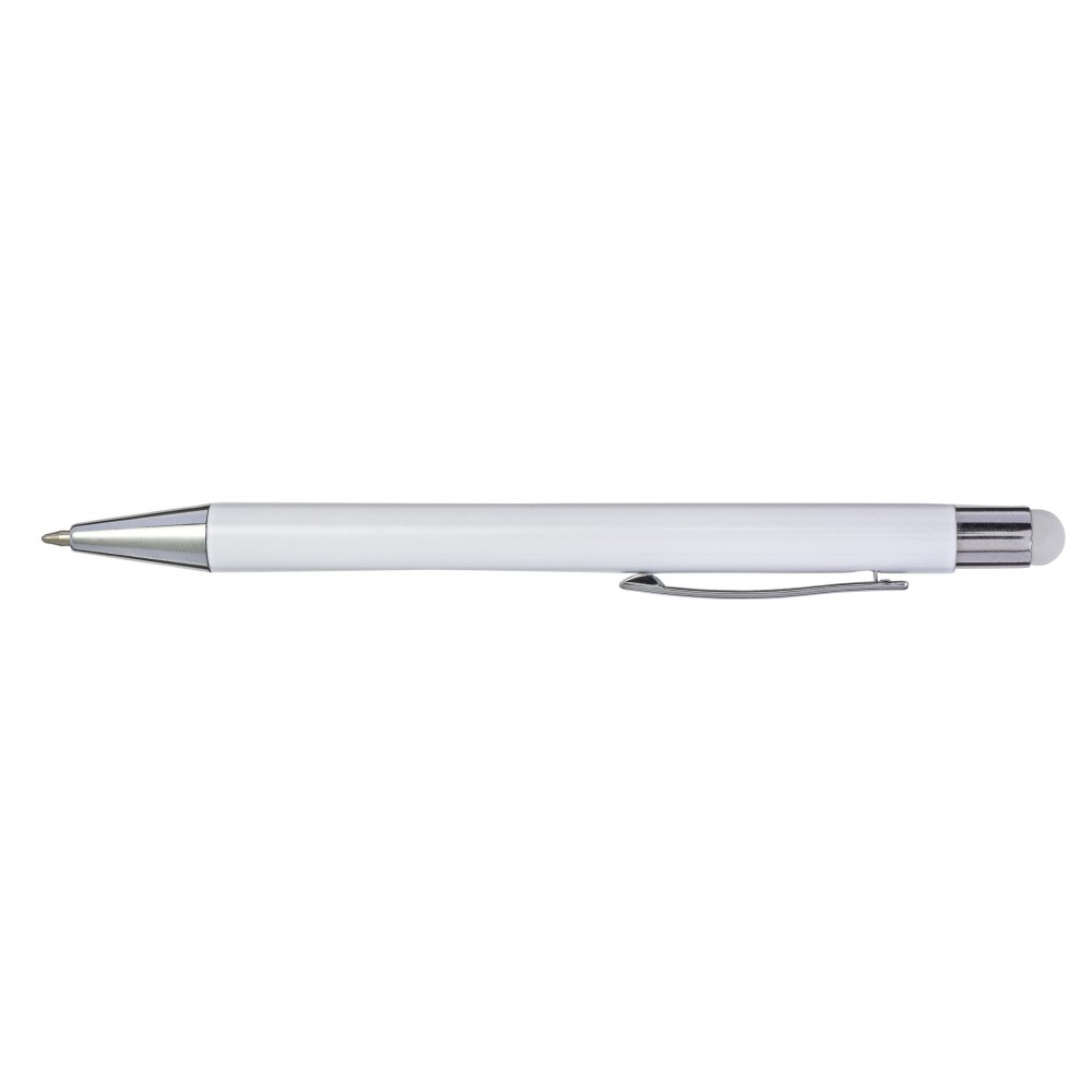 Aluminium and ABS ballpen with rubber tip for capacitive screens. When the pen is lasered, the imprint will show in colour. Blue ink. Printing: UV printing