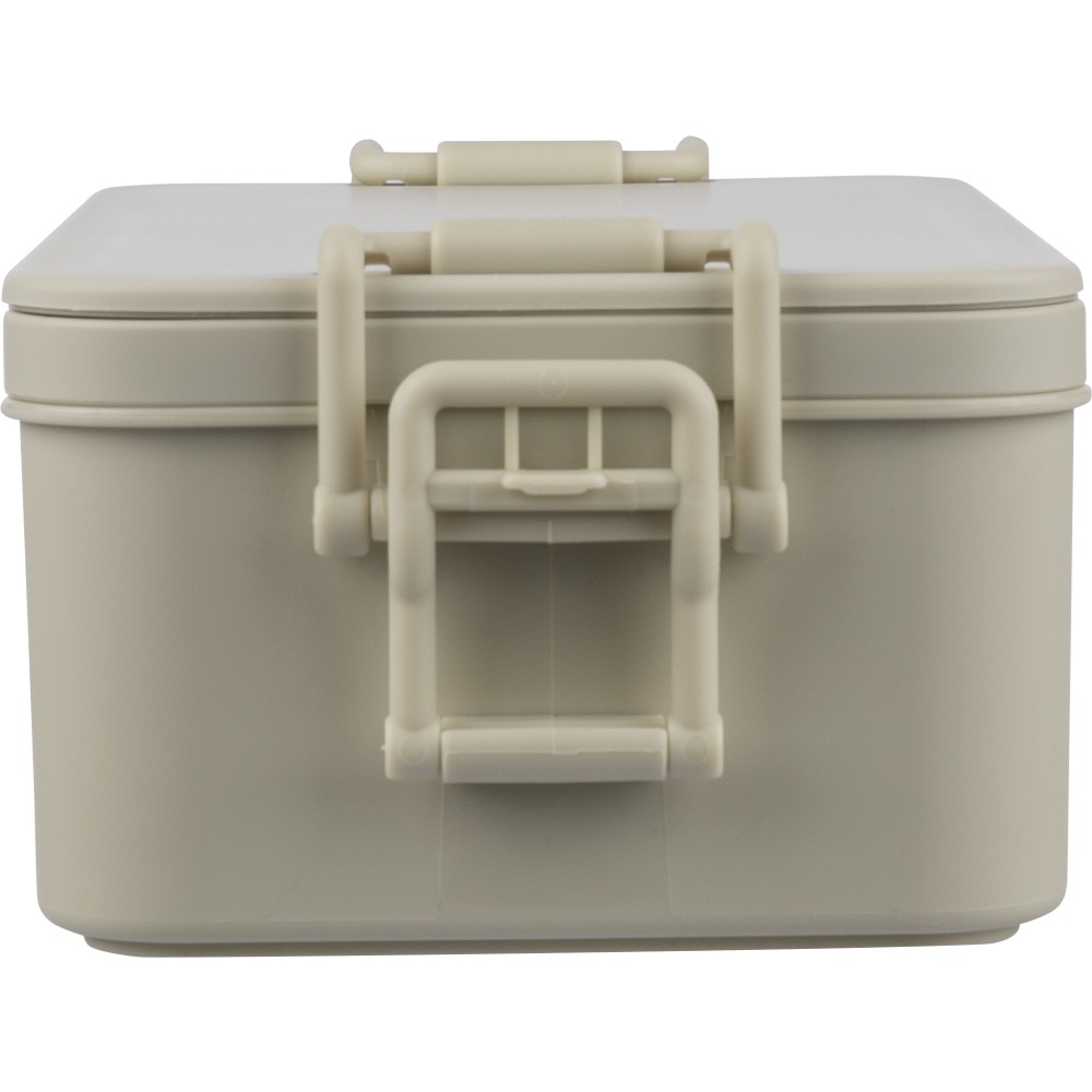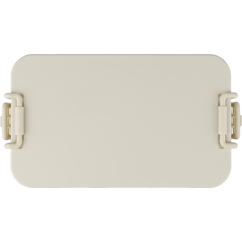 PP two-layer lunchbox with clip closure and PP lid. Features a smaller bottom compartment that stacks into the top to save space. Includes intermediate layer with 3-piece cutlery set. 2,200 ml capacity. Packed in bulk.