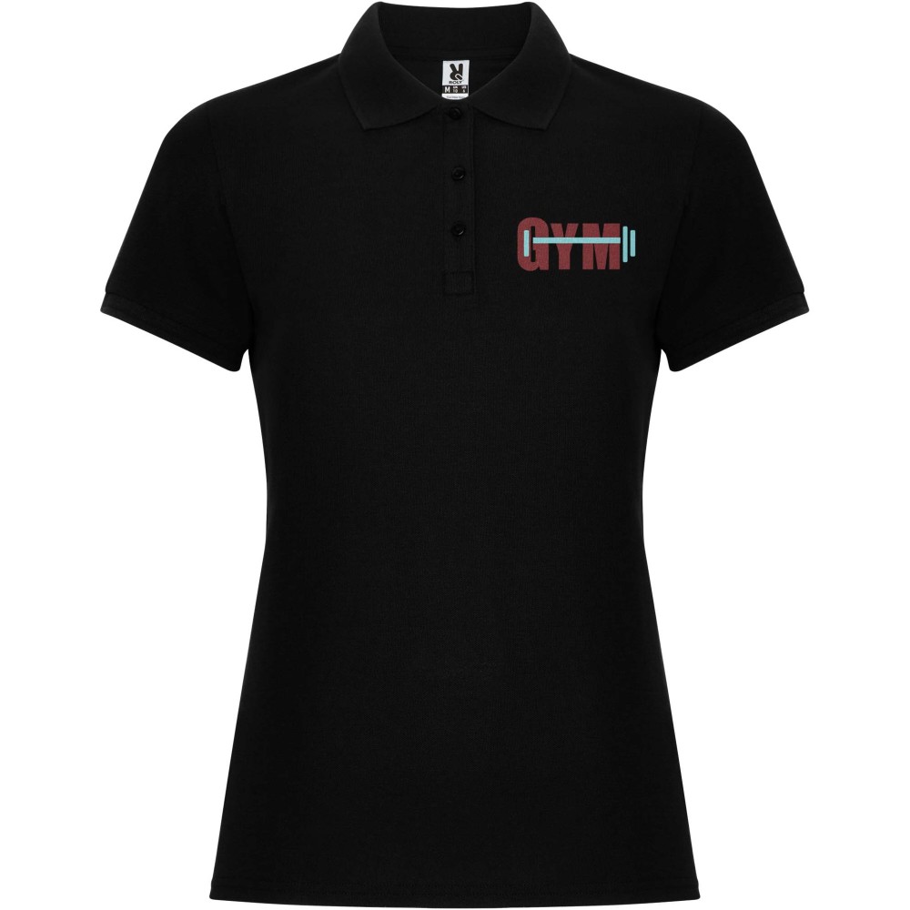 Fitted short-sleeve polo shirt. Collar and cuffs in 1x1 ribbed fabric. 3-button placket. Reinforced covered seams in collar. Side slits on hem. Removable label. Anti-pilling treatment. Printing: Embroidery, Screen-printing