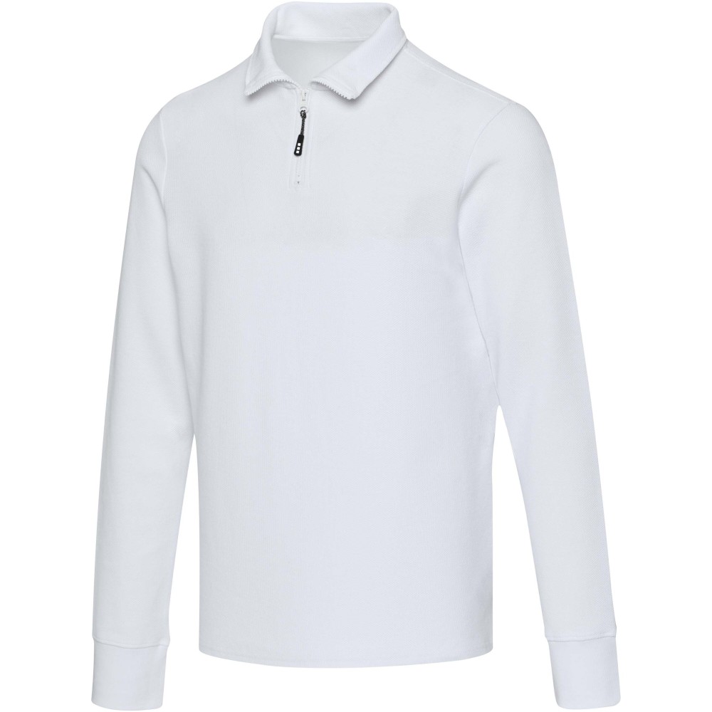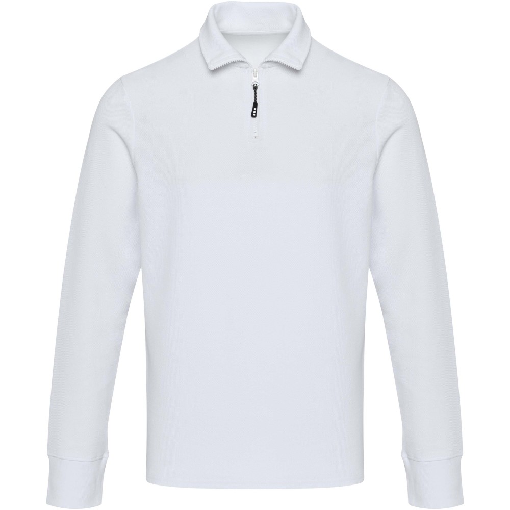 The Zeus unisex long sleeve with half zip is made from 245 g/m2 piqué knit in 100% cotton for year-round wear. It features refined pick-stitch detailing, with self-fabric neck tape for added durability and side slits with self-fabric inserts for enhanced mobility. A heat transfer main label ensures label-free comfort. Equipped with AWARE™ traceability technology, this garment includes a digital product passport for verified transparency and sustainability.