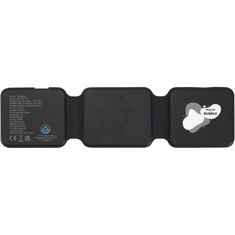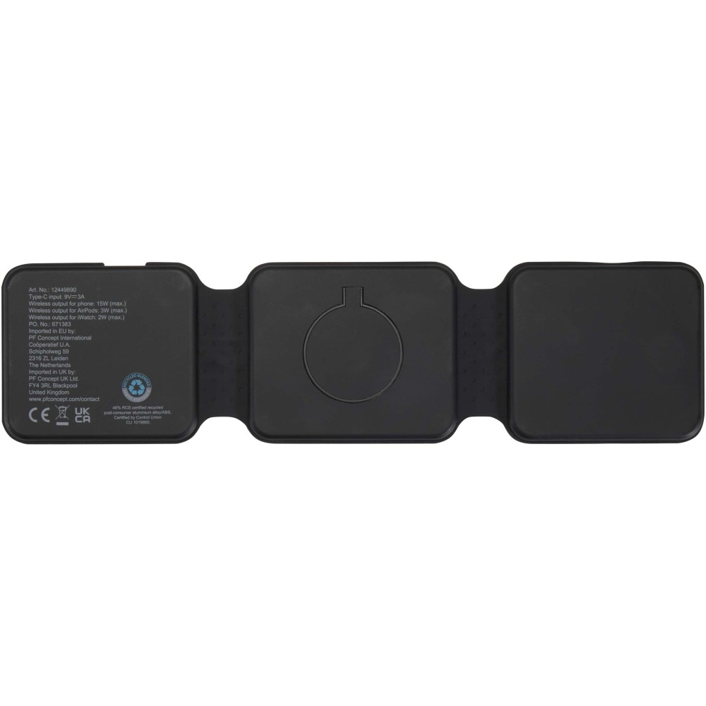 The Armus 3-in-1 wireless charger is made from recycled plastic, and can power a smartphone, AirPods, and iWatch all at once, with up to 15W wireless charging speed. Its foldable, magnetic design lets you place your phone in landscape mode ? perfect for watching while charging. Compatible with all wireless charging phones, including iPhone 12 and newer (or phones with a magnetic ring). Type-C connector included.