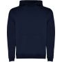 Two-colour hoodie with double fabric. Reinforced covered seams in collar and kangaroo style pocket. 1x1 elastane rib in cuffs and waistband. Removable label. The model is 120 cm and is wearing size 5/6. Knit of 50% Cotton and 50% Polyester, 280 g/m2. Printing: Embroidery, Screen-printing