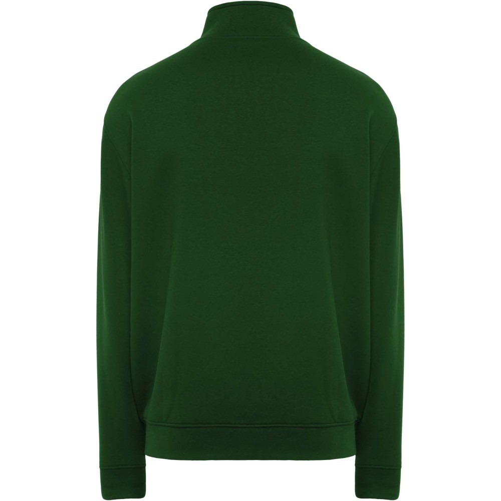High collar sweater with matching zip. Matching inner collar with reinforced covered seams. 1x1 ribbed fabric in cuffs and waist. Removable label. The male model is 185 cm and is wearing size L, and the female model is 168 cm and is wearing size S. Printing: Embroidery, Screen-printing