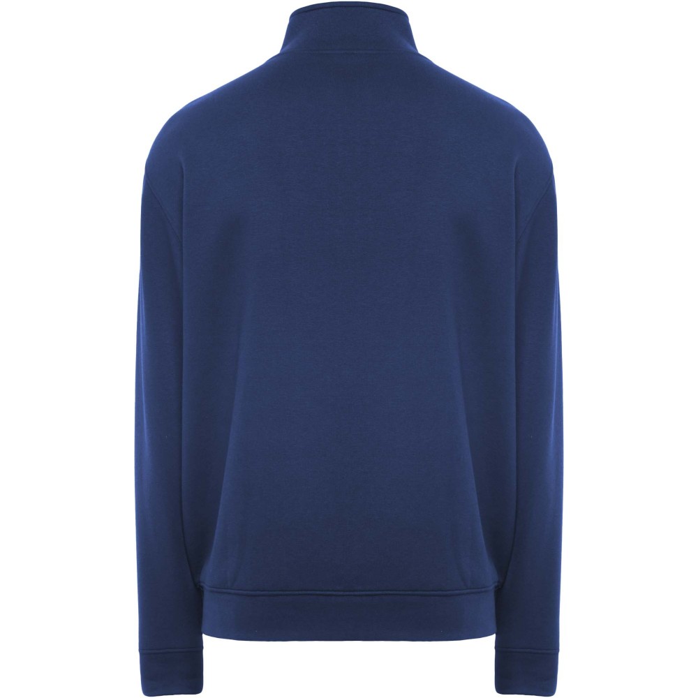 High collar sweater with matching zip. Matching inner collar with reinforced covered seams. 1x1 ribbed fabric in cuffs and waist. Removable label. The male model is 185 cm and is wearing size L, and the female model is 168 cm and is wearing size S. Printing: Embroidery, Screen-printing