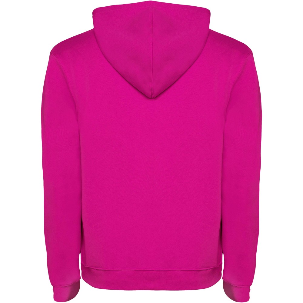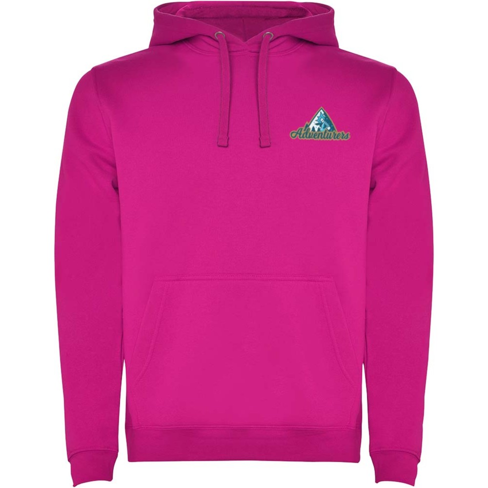 Hoodie with double fabric, adjustable drawcord, reinforced covered seams in collar and kangaroo style pocket. Available in uni-colours and two-tone colours. 1x1 elastane rib in cuffs and waistband. Removable label. The model is 185 cm and is wearing size M. Printing: Embroidery, Screen-printing