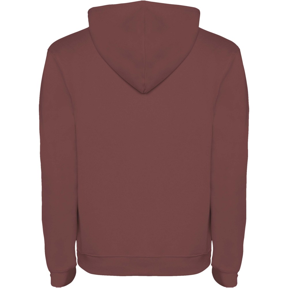 Hoodie with double fabric, adjustable drawcord, reinforced covered seams in collar and kangaroo style pocket. Available in uni-colours and two-tone colours. 1x1 elastane rib in cuffs and waistband. Removable label. The model is 185 cm and is wearing size M. Printing: Embroidery, Screen-printing