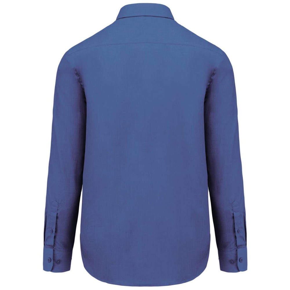 65% polyester / 35% cotton poplin. Easy-care fabric. Cut-away boned collar. Matching buttons. Rounded chest pocket on left side. Double back yoke. Felled seams. Adjustable rounded button cuffs with placket. 2 spare buttons. Certifié STANDARD 100 by OEKO-TEX® N° CQ1007/8, IFTH. Printing: Embroidery