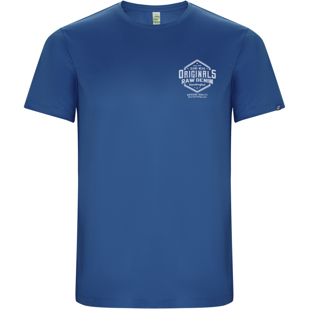 Technical short-sleeve t-shirt in recycled CONTROL-DRY polyester. Crew neck with matching covered seams. ECO logo label on sleeve. Packing in recycled material. Removable ECO label. Packing in recycled material. Technical fabric. The model is 180 cm and is wearing size M. Interlock knit of 50% Recycled Polyester and 50% Polyester, 135 g/m2. Printing: Screen-printing
