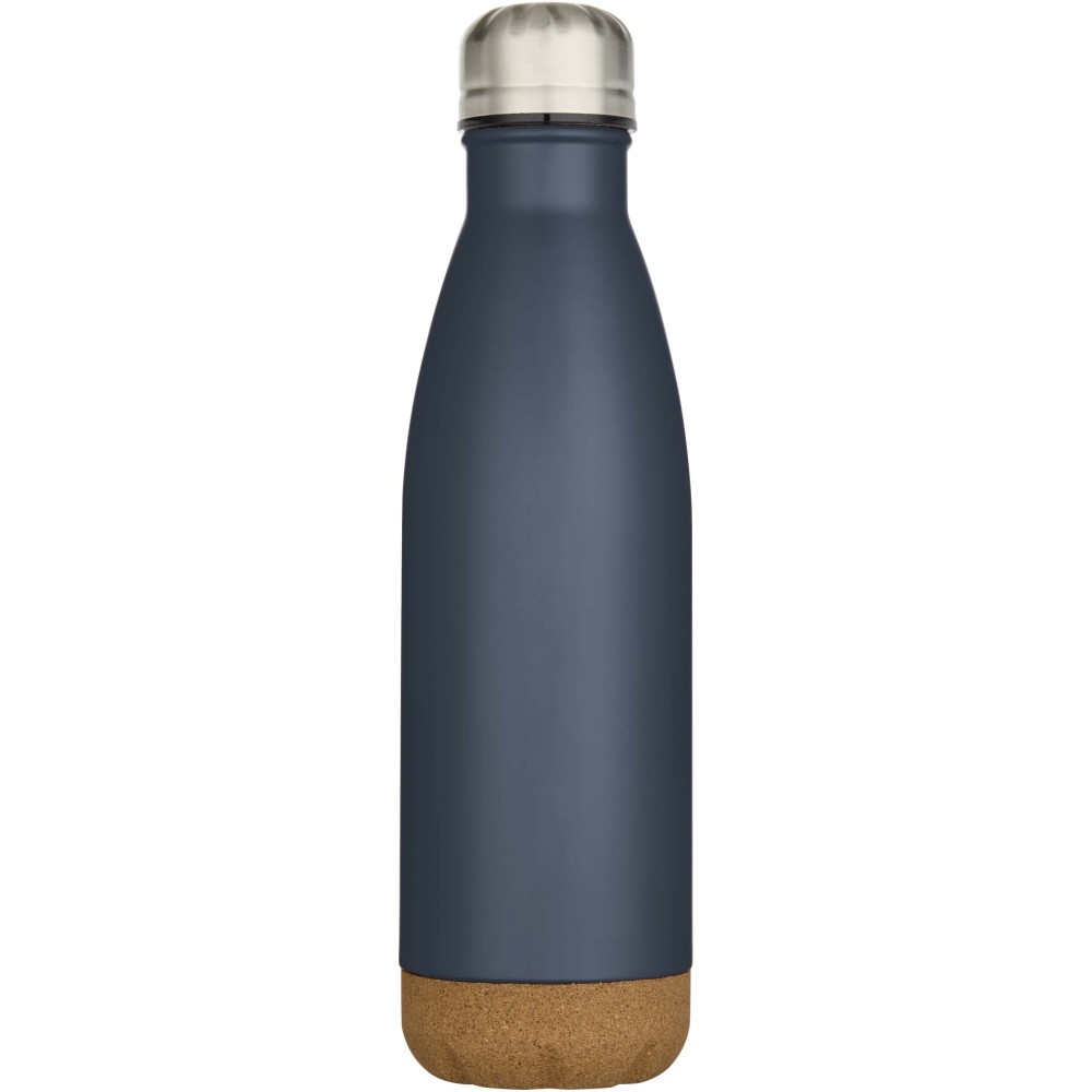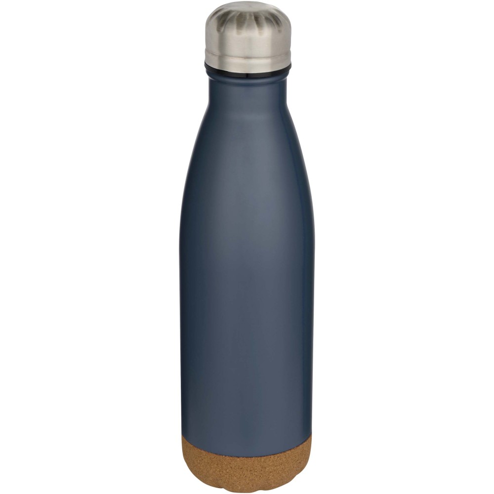 Vacuum insulated stainless steel water bottle with cork details at the bottom. The double-wall insulation keeps drinks hot for 12 hours and cold for 48 hours. Presented in a recycled cardboard gift box. Volume capacity: 500 ml. Printing: Engraving, Pad printing