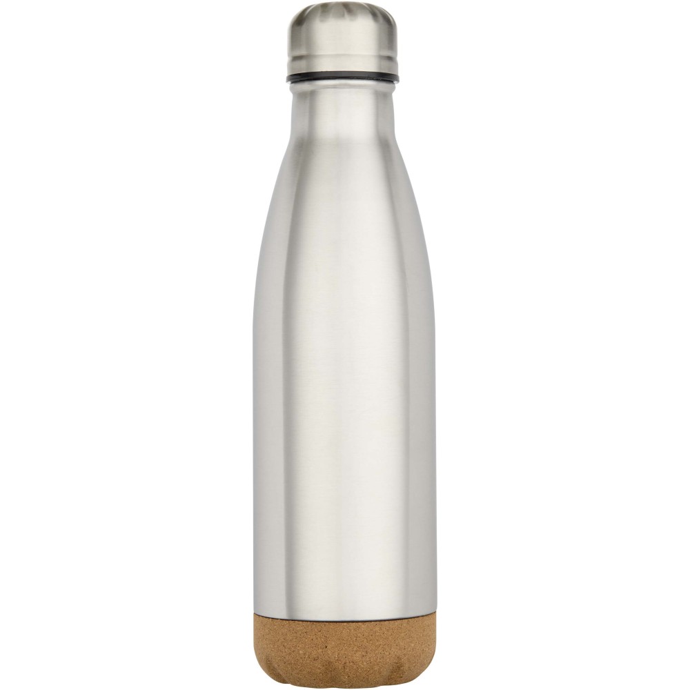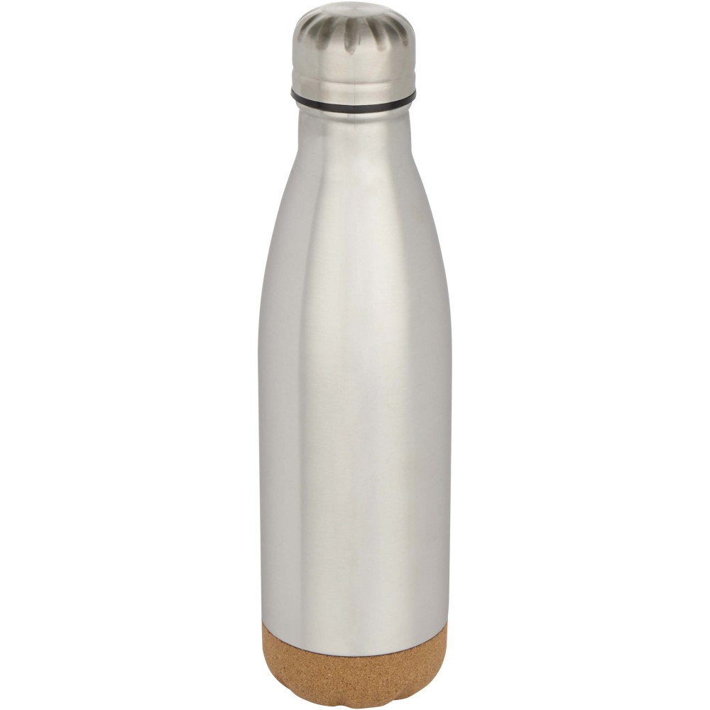 Vacuum insulated stainless steel water bottle with cork details at the bottom. The double-wall insulation keeps drinks hot for 12 hours and cold for 48 hours. Presented in a recycled cardboard gift box. Volume capacity: 500 ml. Printing: Engraving, Pad printing
