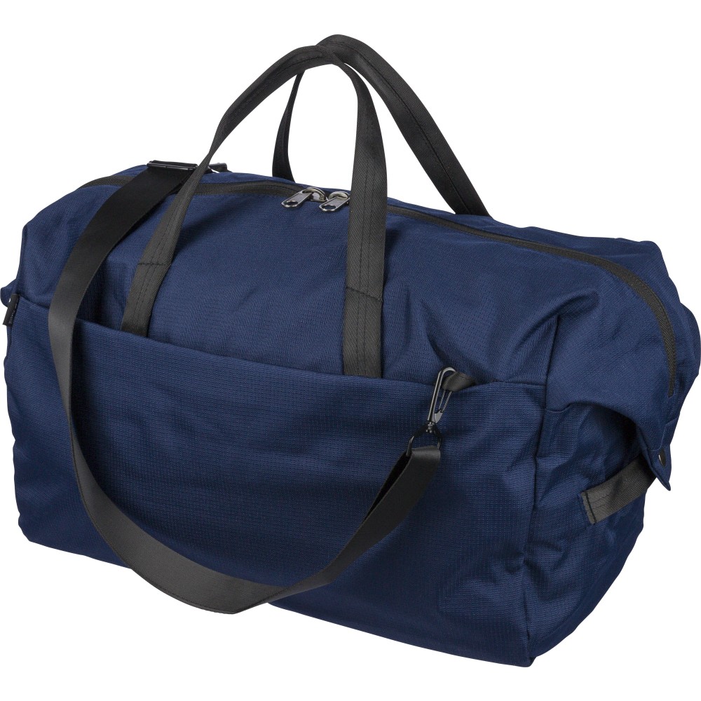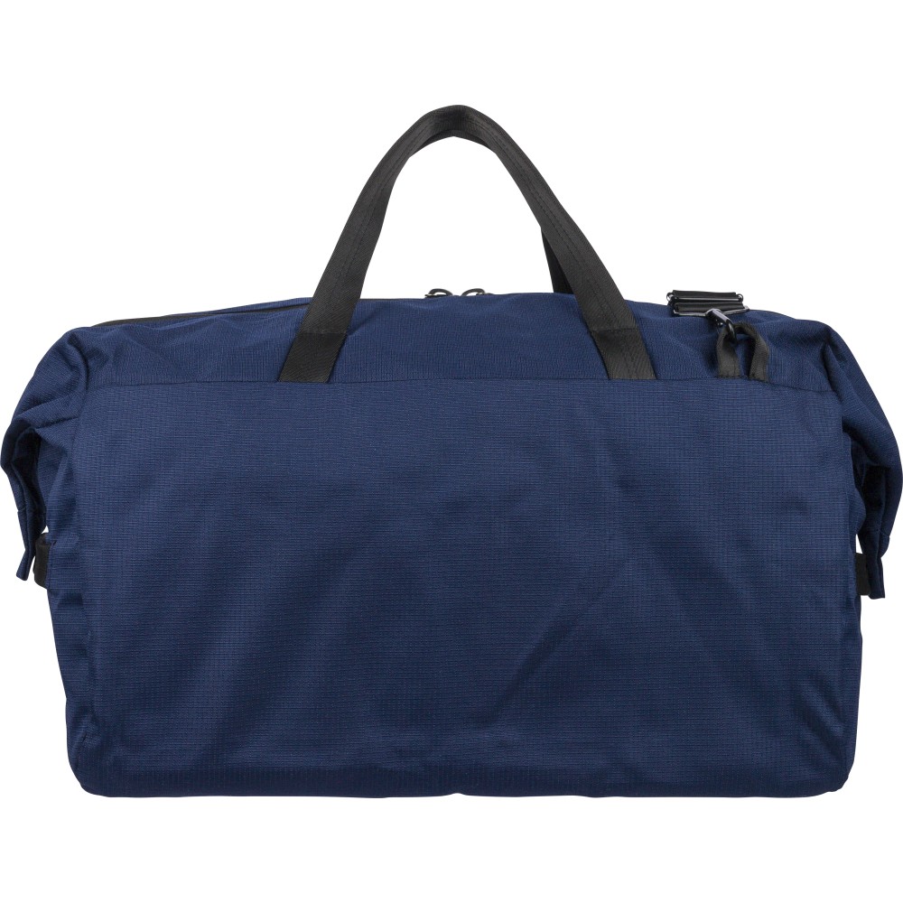 rPET 300D Ocean Bound sports bag made from recycled ocean plastic with a durable, textured finish. 33.7 l capacity with large main compartment, front and inner zippered pockets. Features two sturdy handles, adjustable shoulder strap, and Ocean Bound Plastic label. Printing: Screen-printing