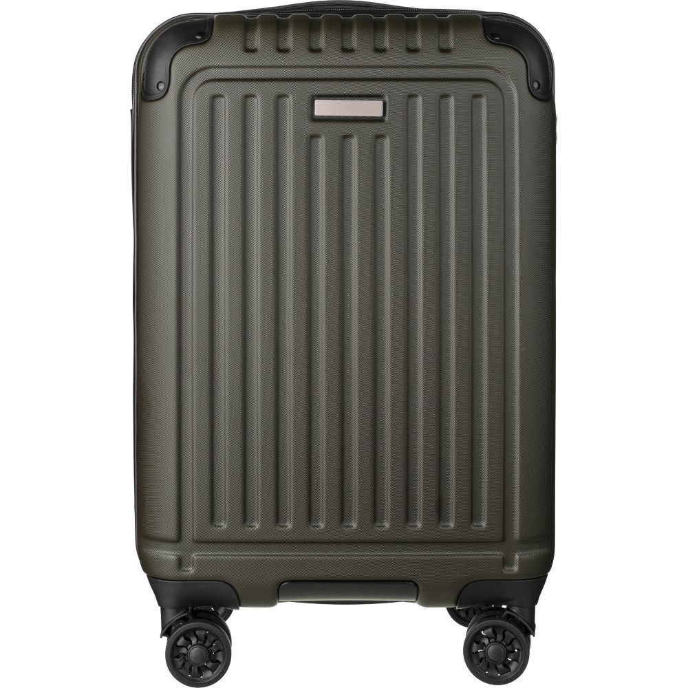 ABS luggage trolley (20 inch) with 8 wheels and a three-level handle system. Includes number lock and a separate plate for laser engraving. Printing: Engraving