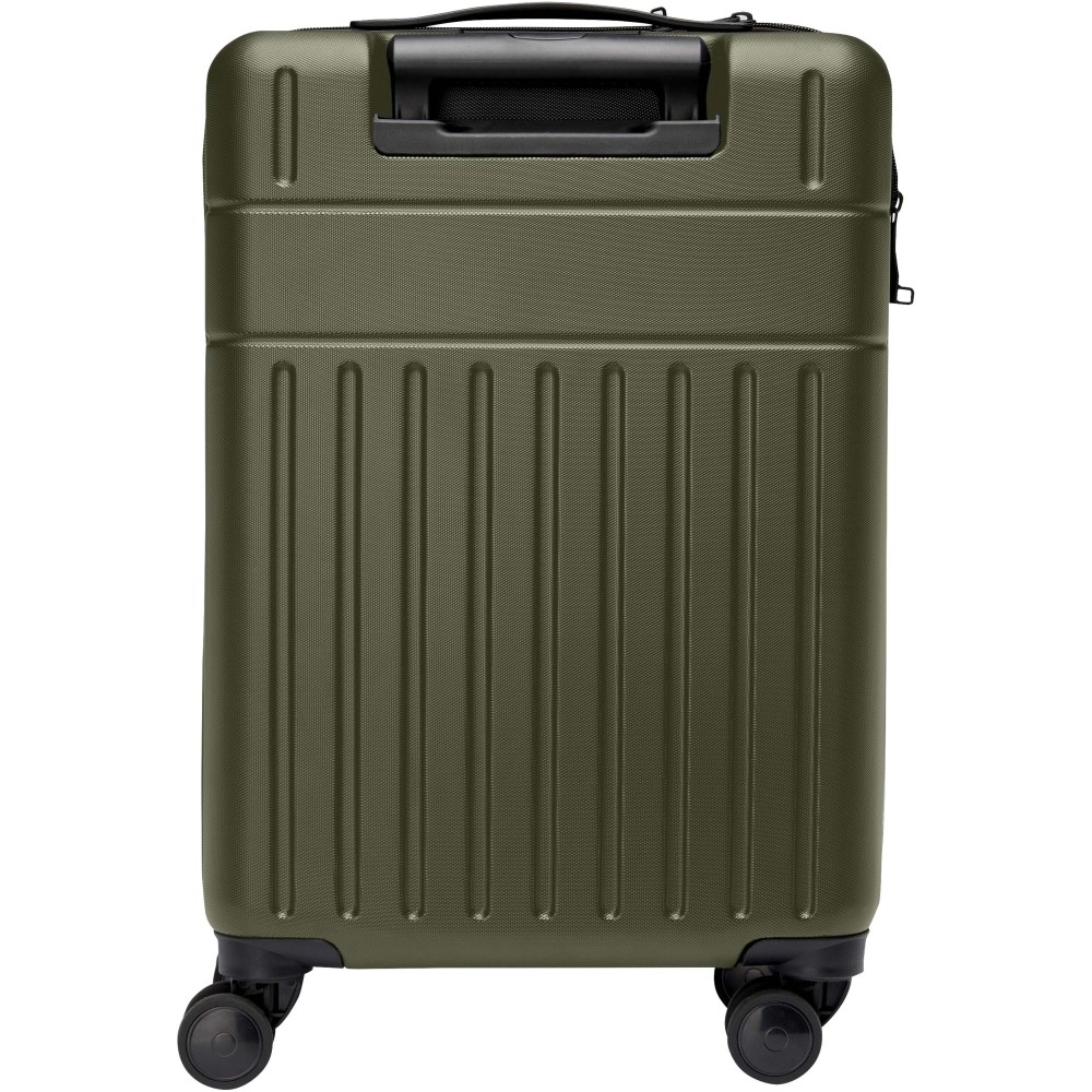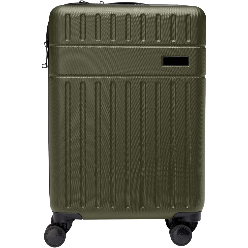 Constructed with impact-resistant recycled plastic and RPET lining, the 20? Rover cabin trolley stands for quality. It features a double-tube aluminium frame, 360 degree 4-wheel spinner, an integrated TSA combination lock, an easy grab handle for comfort, and interior divider organiser compartments. Can be brought as hand luggage on most mainstream airlines. This trolley is GRS certified, including the printing, making it a more responsible choice. Printing: Engraving