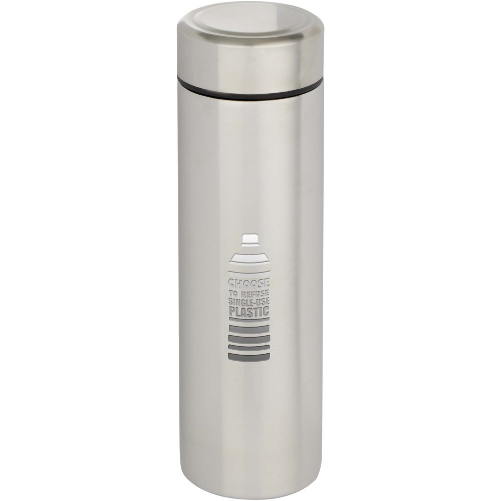 Crafted from double-wall, vacuum-insulated stainless steel, this flask keeps drinks at the desired temperature for longer and includes a removable tea strainer for added convenience. With a 450 ml capacity and a leak-proof design, it is ideal for everyday use or travel.